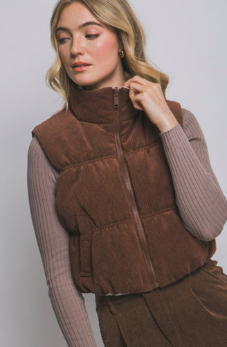 Brown Corduroy Puffer Vest (S-L)